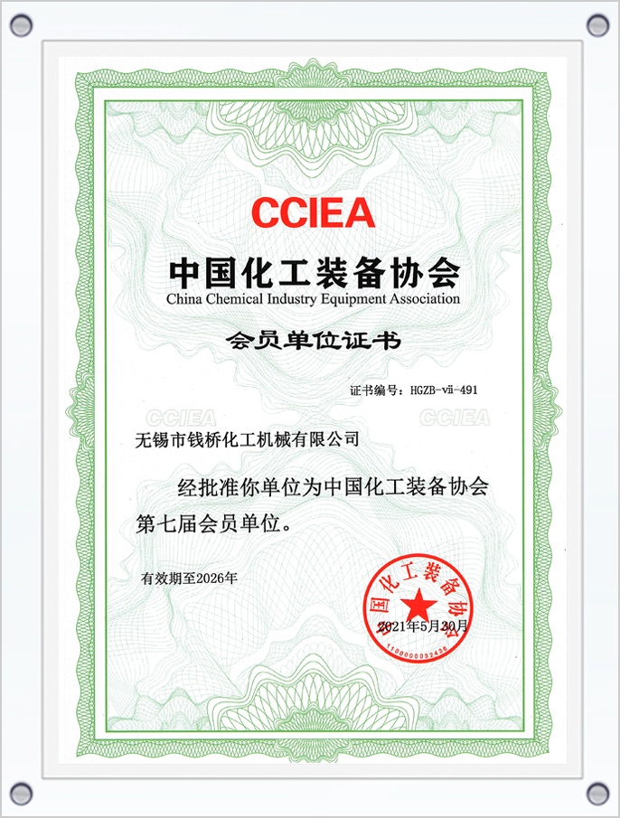 中國化工裝備協(xié)會(huì)會(huì)員單位證書